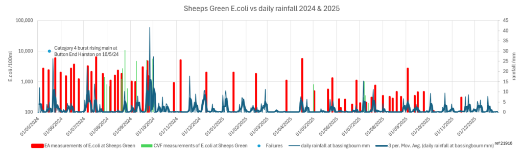 It’s interesting to compare the results from the water quality monitoring that we, and the Environment Agency have been carrying out at Sheep’s Green in the 2024 and 2025 bathing seasons
