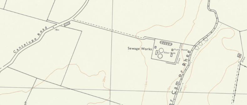 I did a bit of digging into historic maps available from the National Library of Scotland and Wow… The 1956 map marks a Spring, exactly at the site of the sewage works that was built a few years later